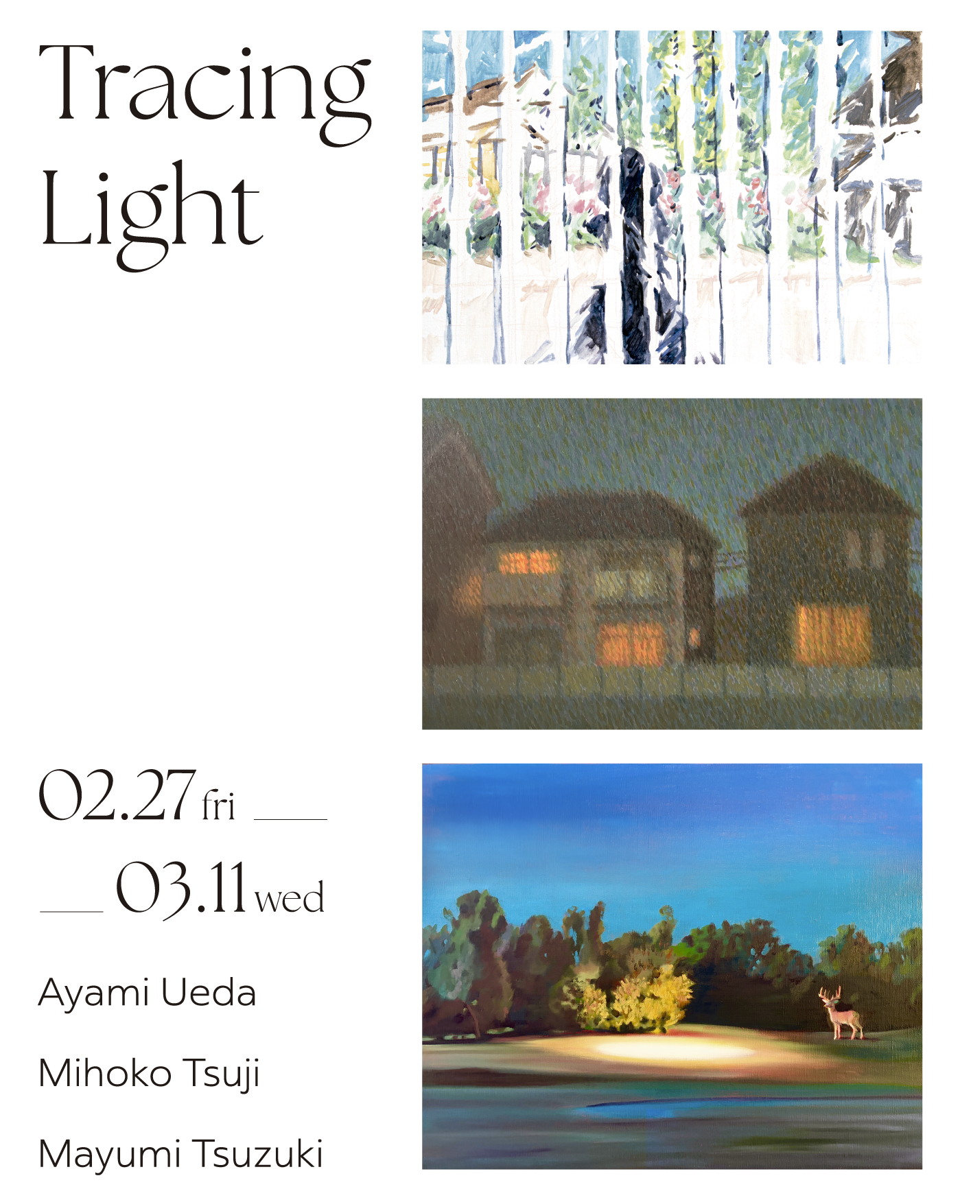 この度 YOD TOKYO では、うえだあやみ、辻美保子、都築まゆ美による三人展『Tracing Light』を開催いたします。
