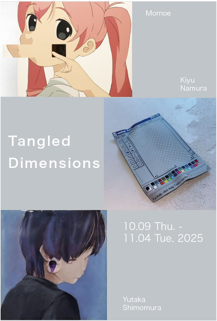 この度 YOD KYOTO では、下村悠天、南村杞憂、ももえによるグループ展『Tangled Dimensions』を開催いたします。
